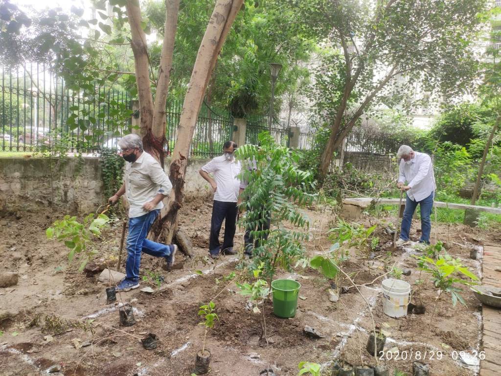 The first Urban forest comes up in Dwarka Sector 7 with support from Earth Day Network as part of our Great Global Cleanup Heroes campaign, using Miyawaki Technique on 29th Aug 20. Environment enthusiasts came together to plant 180 trees using the Japanese technique in the green belt adjoining Brahma Apartments in sector 7 Dwarka. Native trees like Neem, Jamun, Amla, Peepal, Guava, Mango, Karonda, Kaner, Bamboo, Calandera etc. were planted. Using this technique, plants grow very fast and the success rate of tree survival is more than 70%. The oxygen content of the area using this method is 30% more as compared to traditional method of tree plantation.