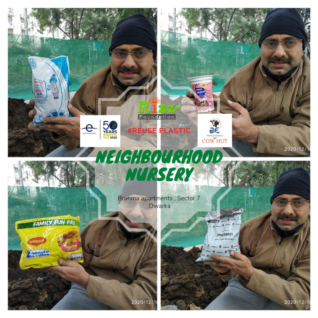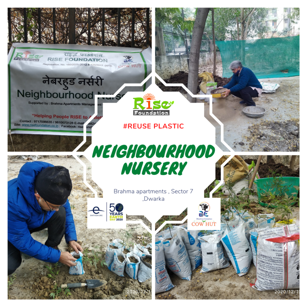 Recently Team RISE Foundation initiated a small step to fight with plastic waste by #reuse of plastic bags as grow bags for saplings. We started a Neighbourhood Nursery in Brahma Apartments, Sector 7, Dwarka (West Delhi).
