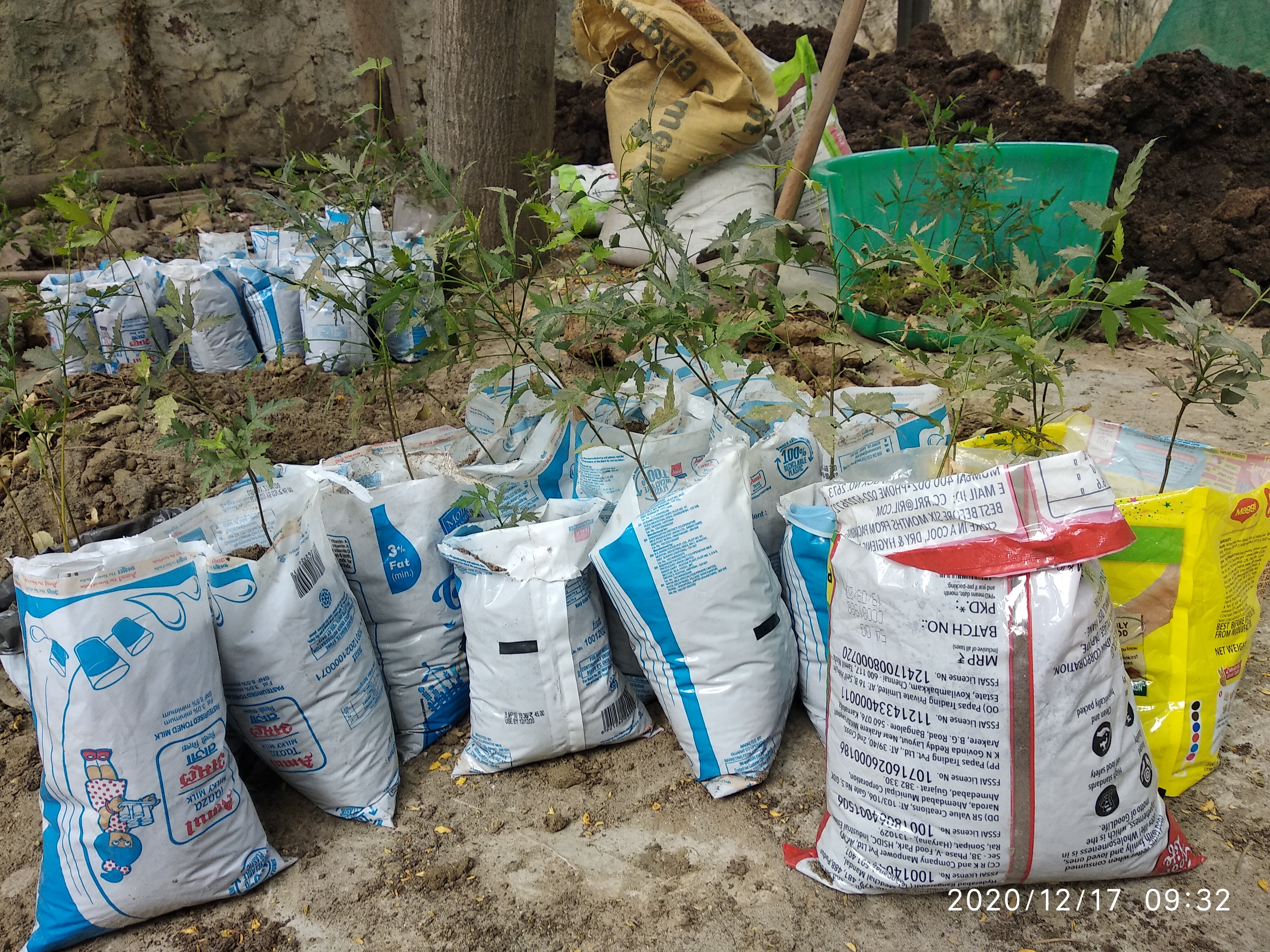 Coming days we are going to prepare saplings of hardy, wild, local plants like mango, neem, wedelia, money plant, fig etc. using these plastic pouches.These sapling will be utilized in creating Miyawaki forest covers, though plantation projects, in and around Delhi, organised by the foundation.