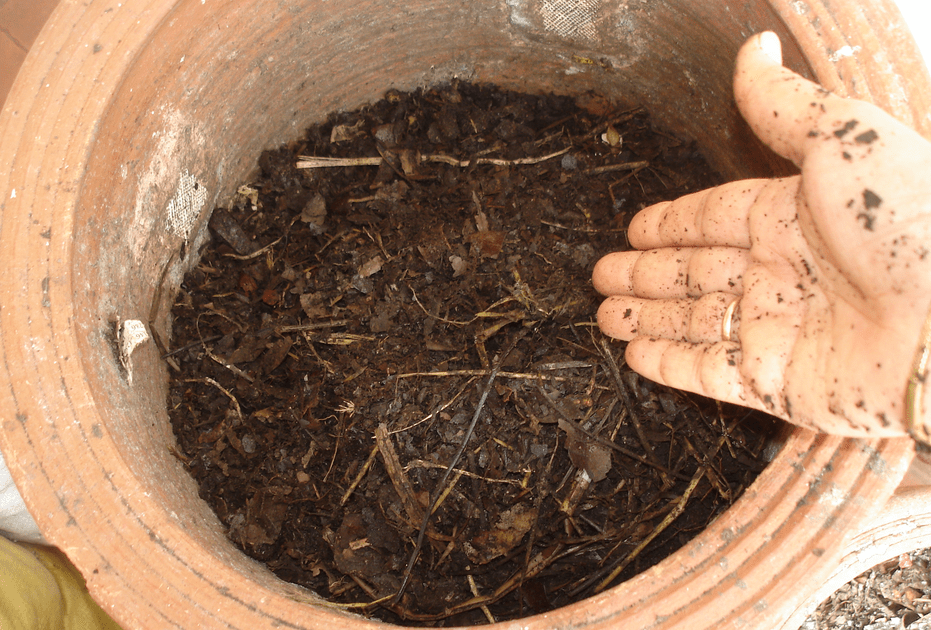 A fully done compost is dark brown and smells like earth. All your organic waste is converted into nutritious manure for plants. I call this the “black gold” which I use for my kitchen garden.
