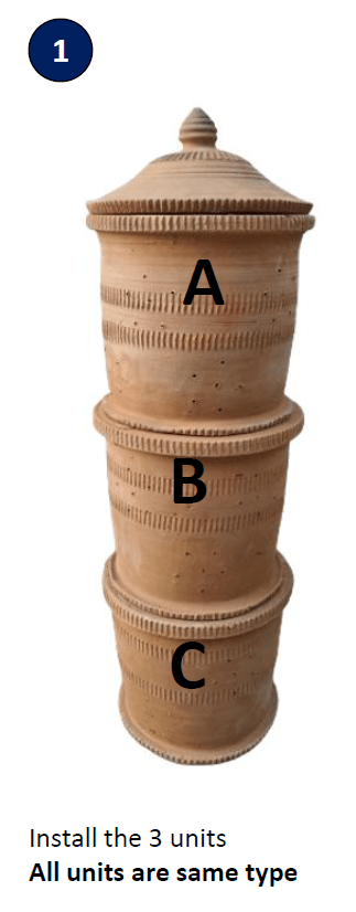 It comes in 3 units which can be stacked one on top of the other. Unit A, Unit B, Unit C and a lid. All units are same and can be placed in any position for easy handling. But I marked with A,B,C to give clarity on usage.
