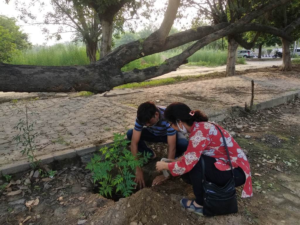 We planted native trees such as peepal, neem, amaltas, pilkhan, baheda, jamun etc. yesterday at Dwarka.