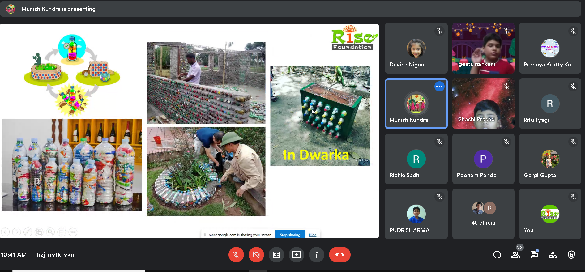 Madhukar Varshney and Munish Kundra ran an online sessions for students of GD Goenka Public School, Vasant Kunj (New Delhi) with the objective of bringing awareness of Plastic Pollution and its impact on Oceans thru rivers. Additionally , Munish Kundra shown a demo of making Ecobricks . Rise Foundation is aiming to recruit more young supporters within the city .