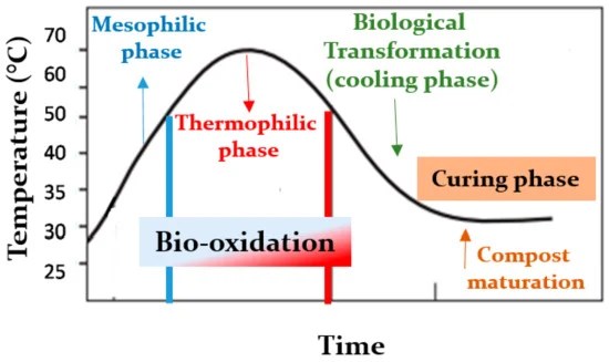 (1) the initial mesophilic phase (10–42 °C), during which, the temperature rapidly rises and initiates organic matter decomposition;