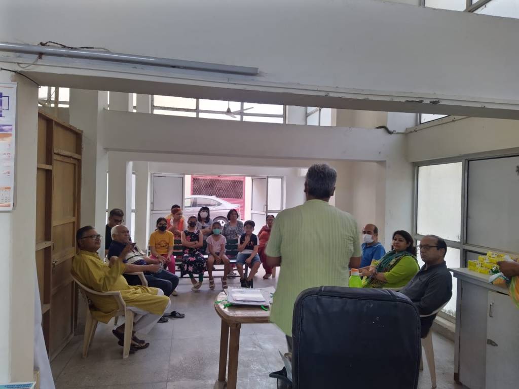 Madhukar Varshney and Munish Kundra from Rise Foundation made the gathering aware of how to manage waste at the source level and how an individual can contribute to minimising the greenhouse effect. Munish Kundra urged the people to condemn single-use plastic in daily life. He also demonstrated how to manage such plastic by making eco-bricks. Kids of the society also took part in the interaction on the subject and shared their knowledge and asked queries to the experts.