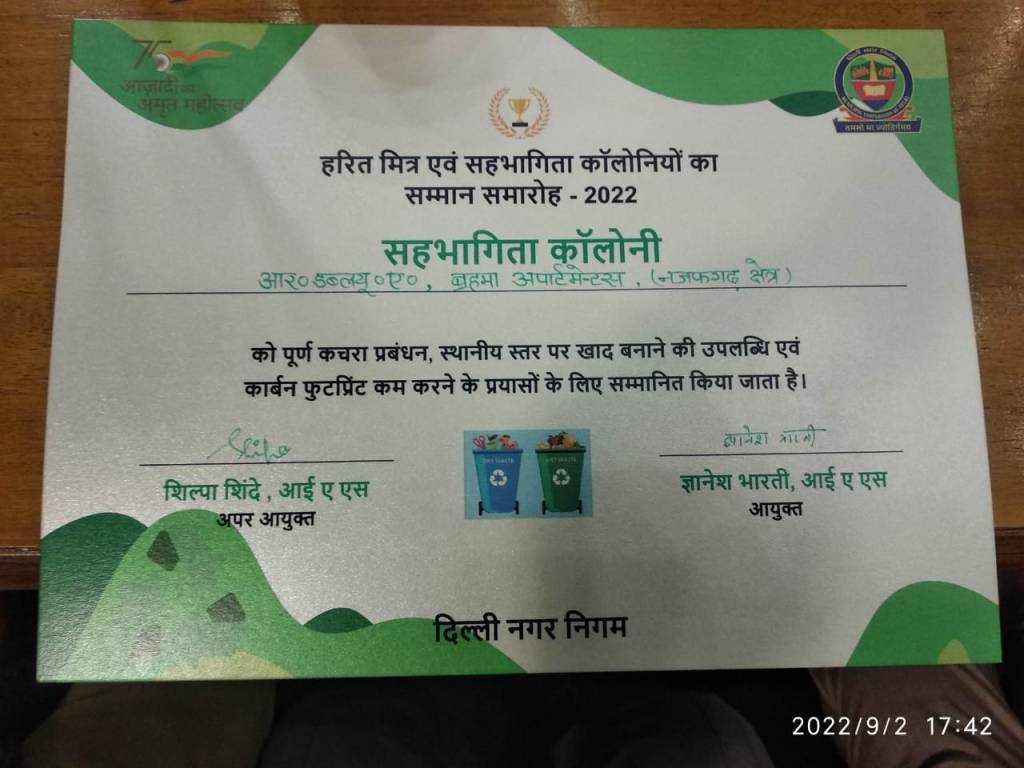 The Students were exposed to the live use case of Aerobic Composting using various type of composters i.e. Terracotta Home Composter, Twin Drum Composter , Vermi compost (trail setup) and Cage Composters. Brahma Apartment is pioneer in Segregation and Safe disposal of Waste. The society got the First prize in row for last 2 years from Delhi Municipality in south zone.