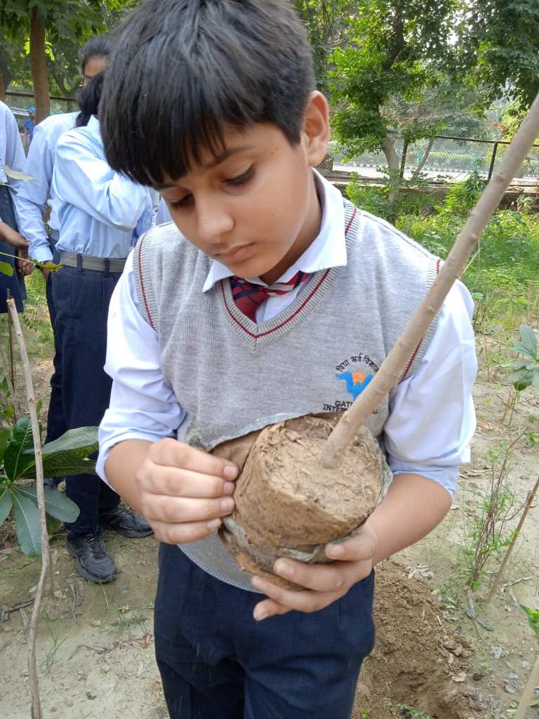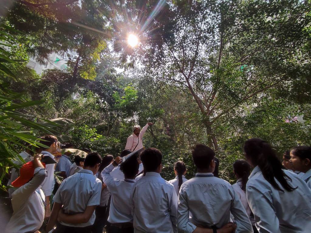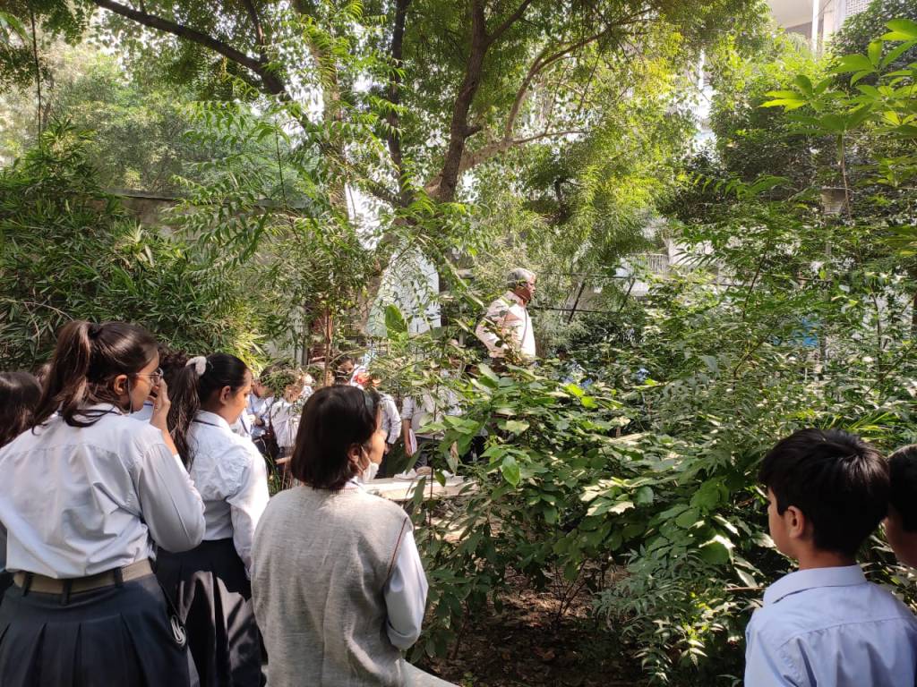 At the end, student learn the Miyawaki afforestation technique in berif and visited 2.5 year micro forest developed at Brahma Apartments and recently establised Urban forest at Shaheed Flt Lft Sunit Mohanty Memorial park and did plantation as “token of participation”.