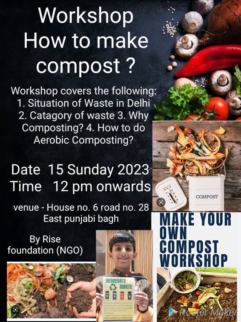 Rise Foundation is committed to make city Clean and Green . So , if any one is interested for FREE Workshop, please whatsapp at +91 9717764262 or mail us at mail2risefoundation@gmail.com