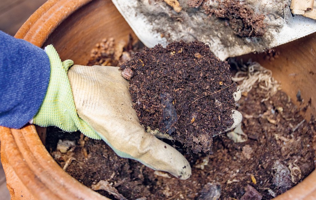 A fully done compost is dark brown and smells like earth.