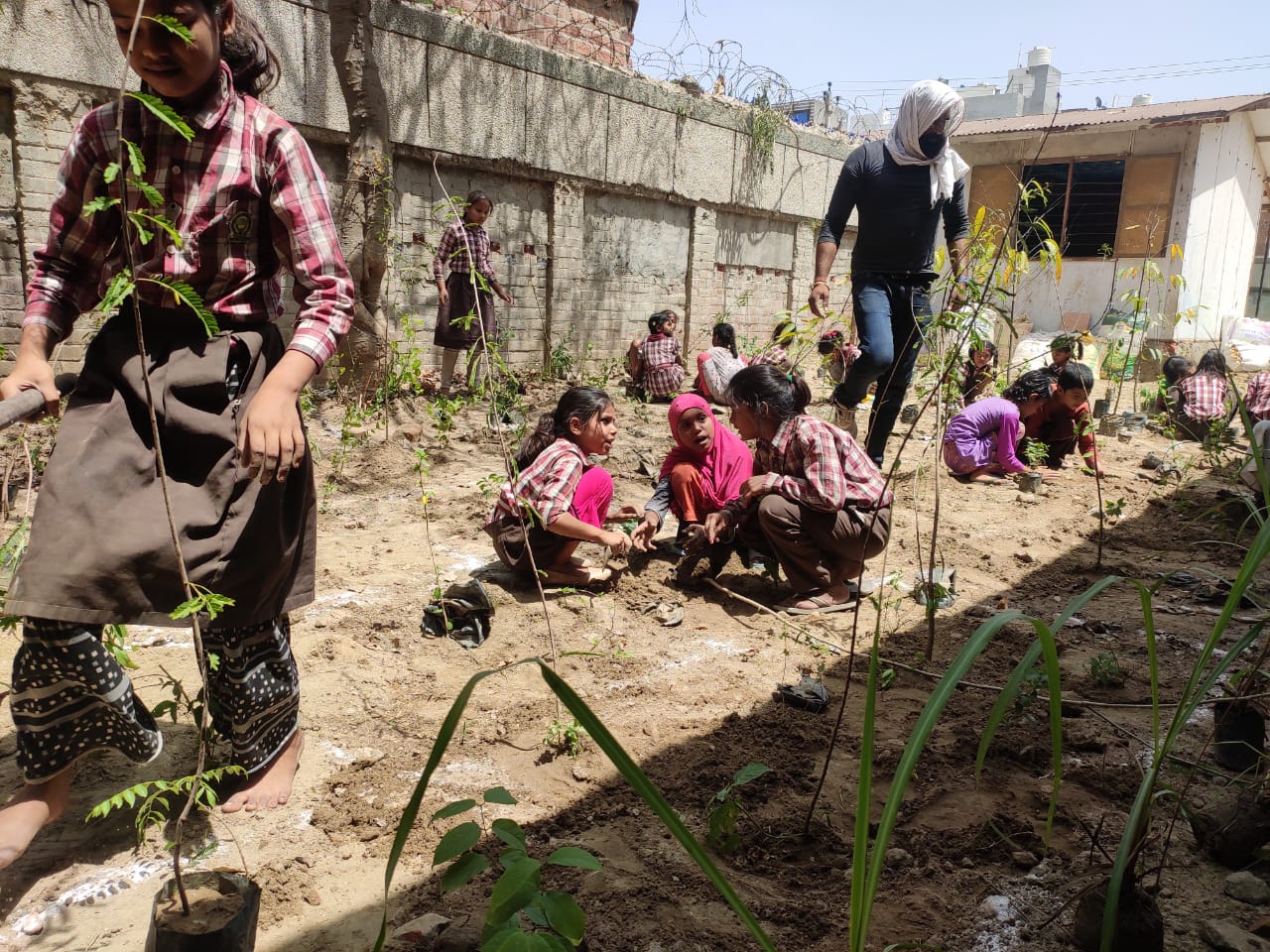 In the school, Rise Foundation established Tiny Urban Forest in 600 sqft area with 200 native plants like Kachnar, Kadamb, Kadi Patta, Ashok, Tikoma, Neem, Gudhal, Karonda, Ruilia, Madhumalti, Chandani, Champa, Mogra , Lemon grass etc..