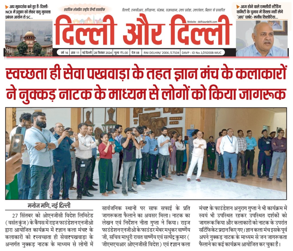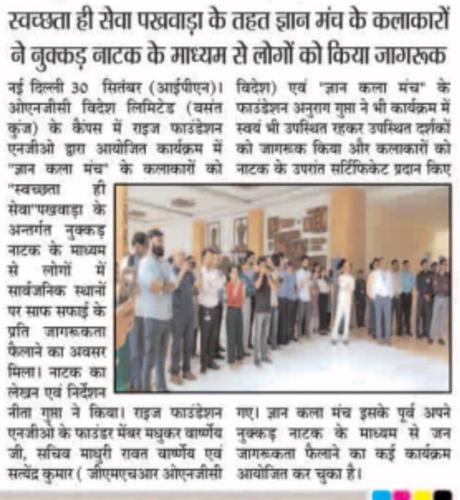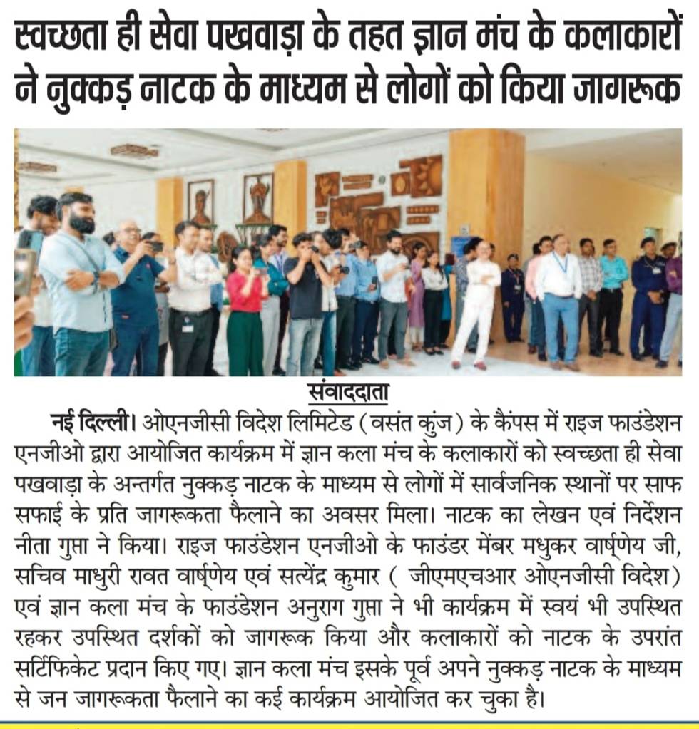 Today on 27th Sept 2024 , we moved one step closer to a cleaner and greener India! Rise Foundation, in collaboration with ONGC Videsh, organized a vibrant Nukkad Natak on #SwachhtaAbhiyan to spread awareness about the importance of #cleanliness and #hygiene in our community.