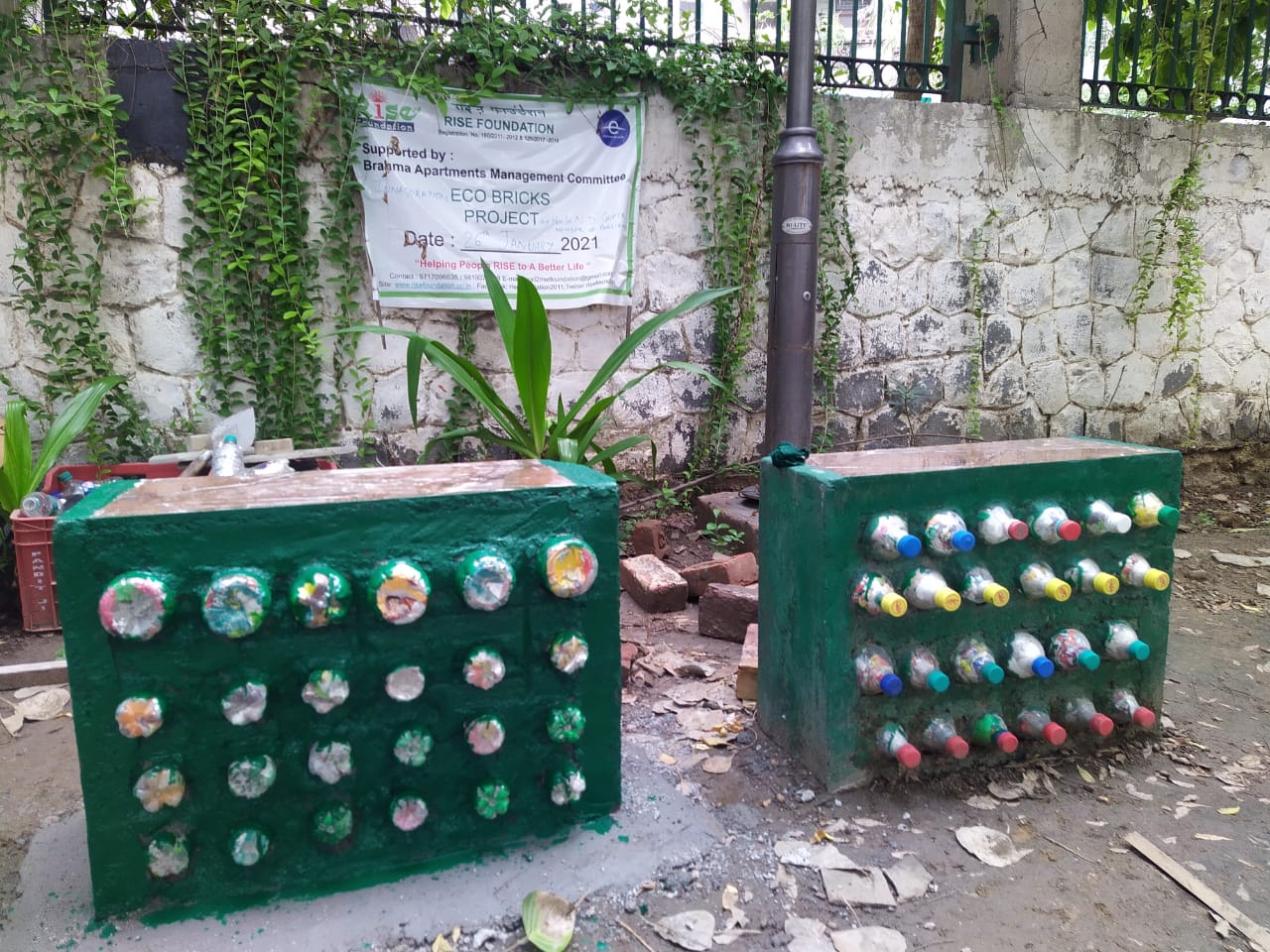Ecobricks made bench in Brahma Apartments, Sector 7,Dwarka.