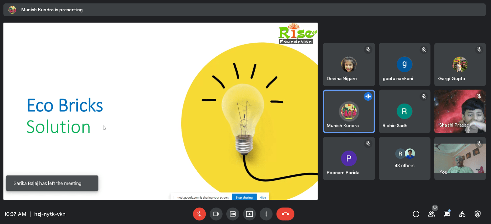 Team Rise Foundation organised an awareness on Plastic waste , River and Ocean pollution and easy to implement solution , an ecobrick making workshop for the teachers and students of New Era Public School (NEPS),Dwarka (New Delhi) today on 7th Aug 2021. The online session was attended by Principal Ms Mrs Kanwal Kohli, teachers Ms.Continue reading “Plastic Pollution Awareness and Ecobricks making workshop to NEPS”