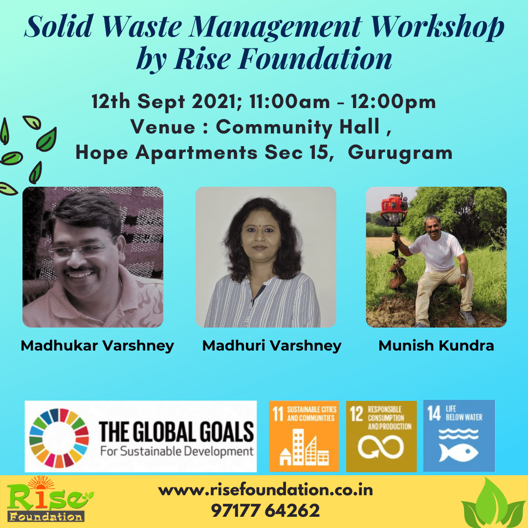 12th Sep 2021Location : Hope Apartments , Sec 15, Gurugram Team RISE Foundation (NGO)Madhukar VarshneyMadhuri Varshney and Munish Kundra gave wonderful session on Solid Waste Management Rule 2016 , Why and how to manage Municipal Solid Waste at Society level and how to handle single use plastic by making ecobricks. There was an online surveyContinue reading “Hope Apartments, Gurugram is planning to participate in Composting Revolution”