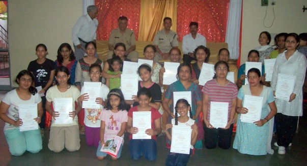 The 10-day Self-Defence Training programme started from 22nd June concluded yesterday, the 5th July, 2011. On the occasion, Shri Parmaditya, Addl. DCP, Shri Mahendra Singh, ACP, Dabri, In his concluding speech, Parmaditya while thanking us for its efforts in organizing the programme, informed that he will try to organize another camp shortly so that left-out interested women get this training and also distributed certificates to the trainees.